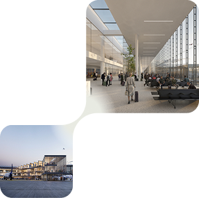 Future plans include an expansion of the current parking capacity. Multiple new parking buildings and areas are to be built to meet future mobility trends, including the necessary infrastructure for electric vehicles. One of the new parking buildings designed to increase the convenience of parking at the airport will include a terminal for public and coach transport. The buildings will largely replace existing parking capacity and we expect to use advanced IT technologies to monitor occupancy and ensure security.